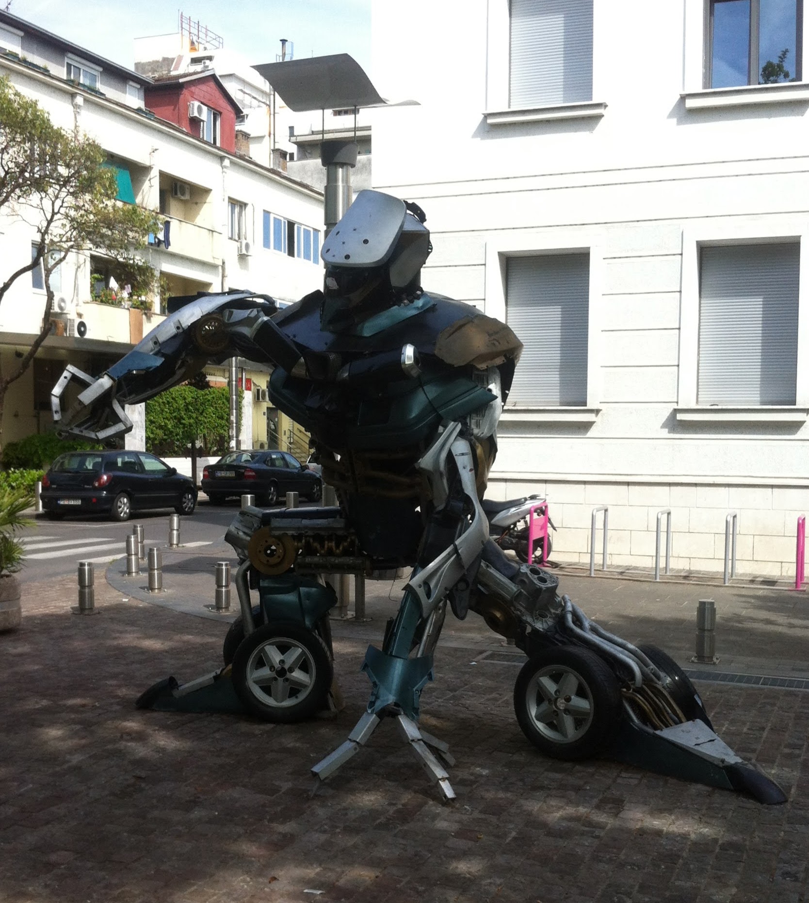 But the first thing we had to do was get new shock absorbers. Tbilisi was her last stop because she’s an adult and had to get back to work. I decided I’d stay as long as it took to get the car fixed. Well, it was hardly a decision, it’s not like I had much choice. I wouldn’t have made it to a next big city. So we went to the part of town that could have what we need (we found out about it from the couple in Lagodekhi). We pulled up in front of a little shop and I got out to ask about getting the parts. The guy I asked didn’t speak english so he waved over another guy. I explained what I needed and he told me to follow him. To one shop, then another and another and another… after a lot of shops we got back to the car, he got in with us and took us to a shop across town. Nobody had parts for a clio, not even the Renault store. Finally we went looking for used parts. We managed to find a couple of shock absorbers and now we needed a mechanic to install them. Our “guide” was still with us and took us to a shop. Once he made sure we were set and the repairs would get done he said he was sorry he didn’t have time to stick around any longer. He shook my hand and started turning away, I had to hold on to his hand to stop him so I could give him some money. He had spent hours with us without even thinking about asking for anything in return! I began to feel like there was something wrong with me and the way I perceive the world. My brain is trained to look for ulterior motives and suspect foul play and here all these wonderful people were, doing nice things for strangers just for the sake of being nice. I felt bad because I had a hard time accepting the notion that people were genuinely nice and kept looking for the catch. But there didn’t seem to be one. Just people helping people regardless of nationality or creed. It’s quite an exceptional thing to experience!