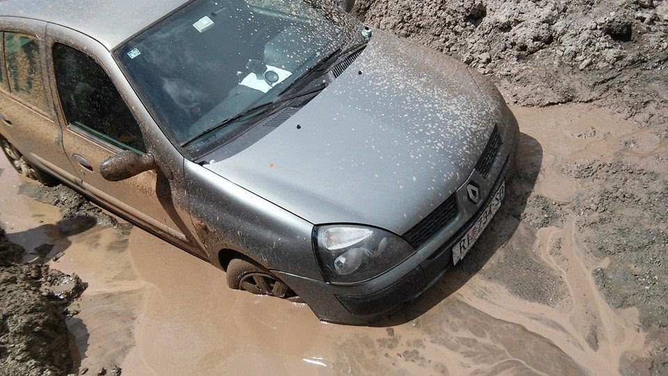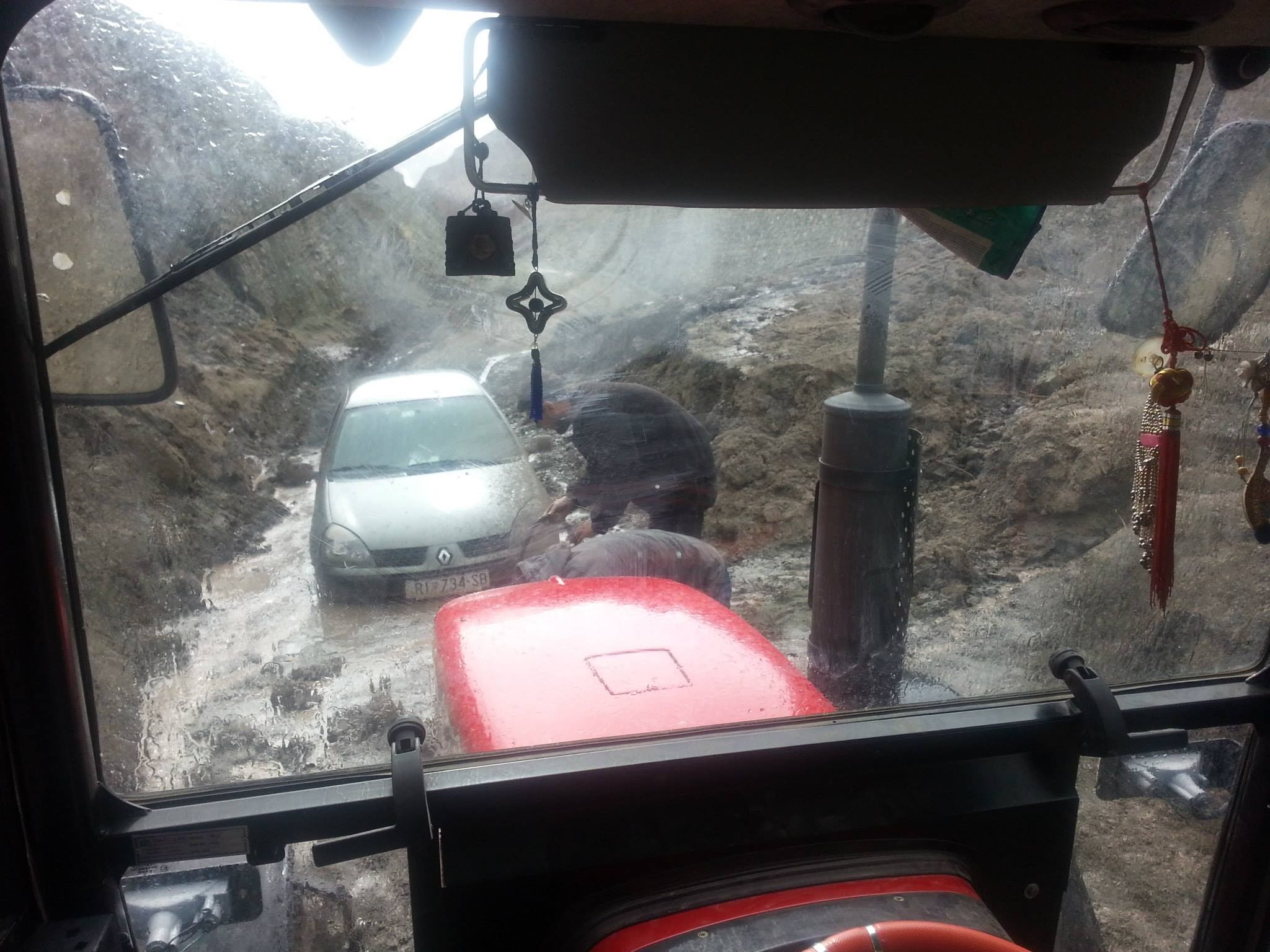 The worker makes us coffee, offers us food, clothes, cigarettes. It starts to rain so other workers begin to gather, play cards, have fun. After a while we get calmer, reckoning that if something bad was going to happen it would have happened by now and that the rifle hanging on the wall was for chasing away bears, not robbing tourists. The tractor comes, we’re heading towards the car. The man offers us cigarettes, takes some candy bars out of a compartment and gives them to us. We hook up the chain and clio is out in a moment. We say goodbye, give the man 100 money, he also kisses me.