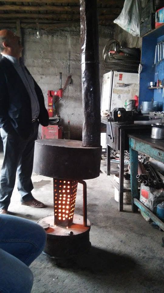 To a workshop which… I don’t know, it’s hard to describe. Let’s just say it does not fill you with confidence. I take the mechanic to the back seat, lift it up and point at the fuel pump.