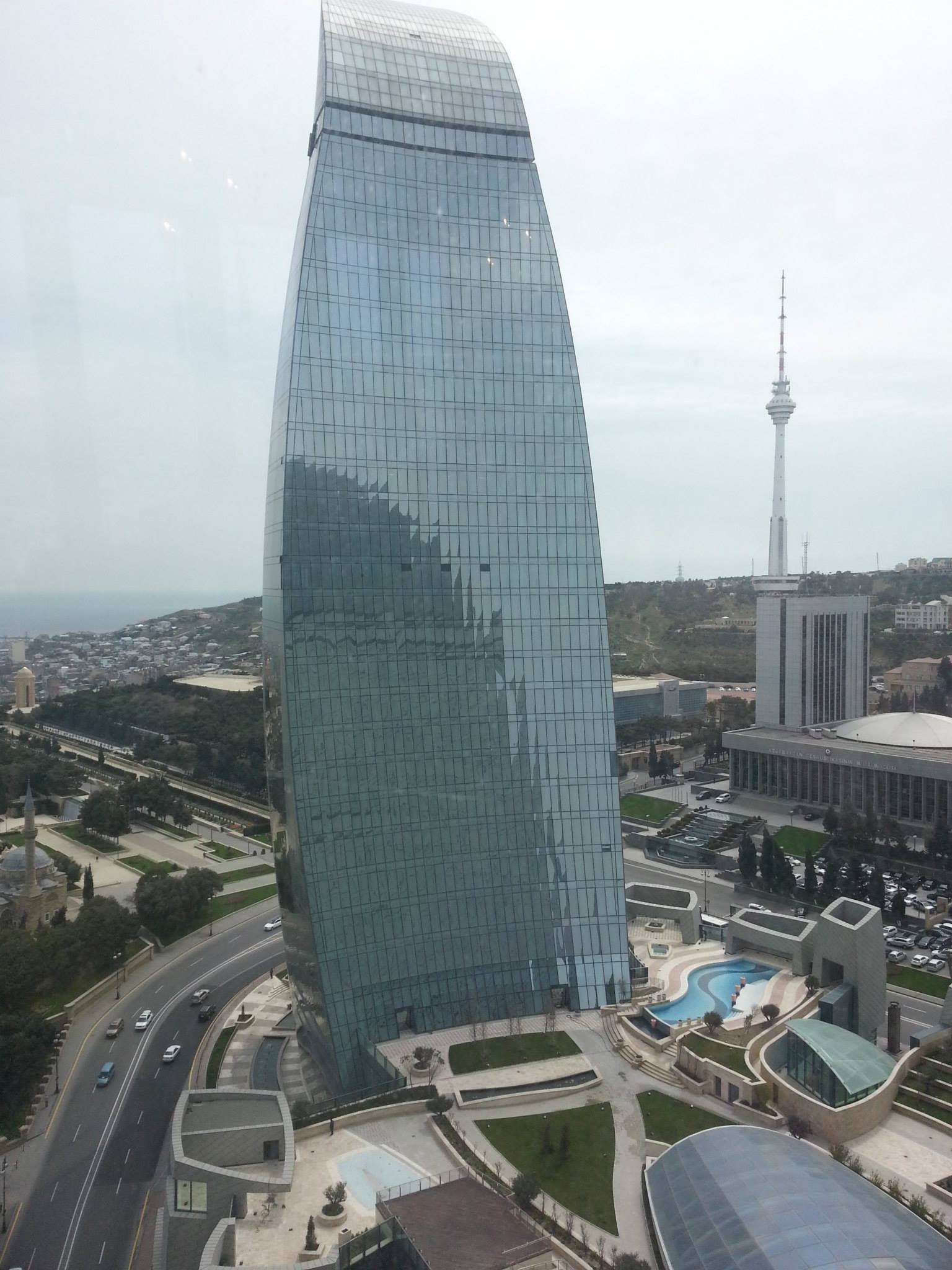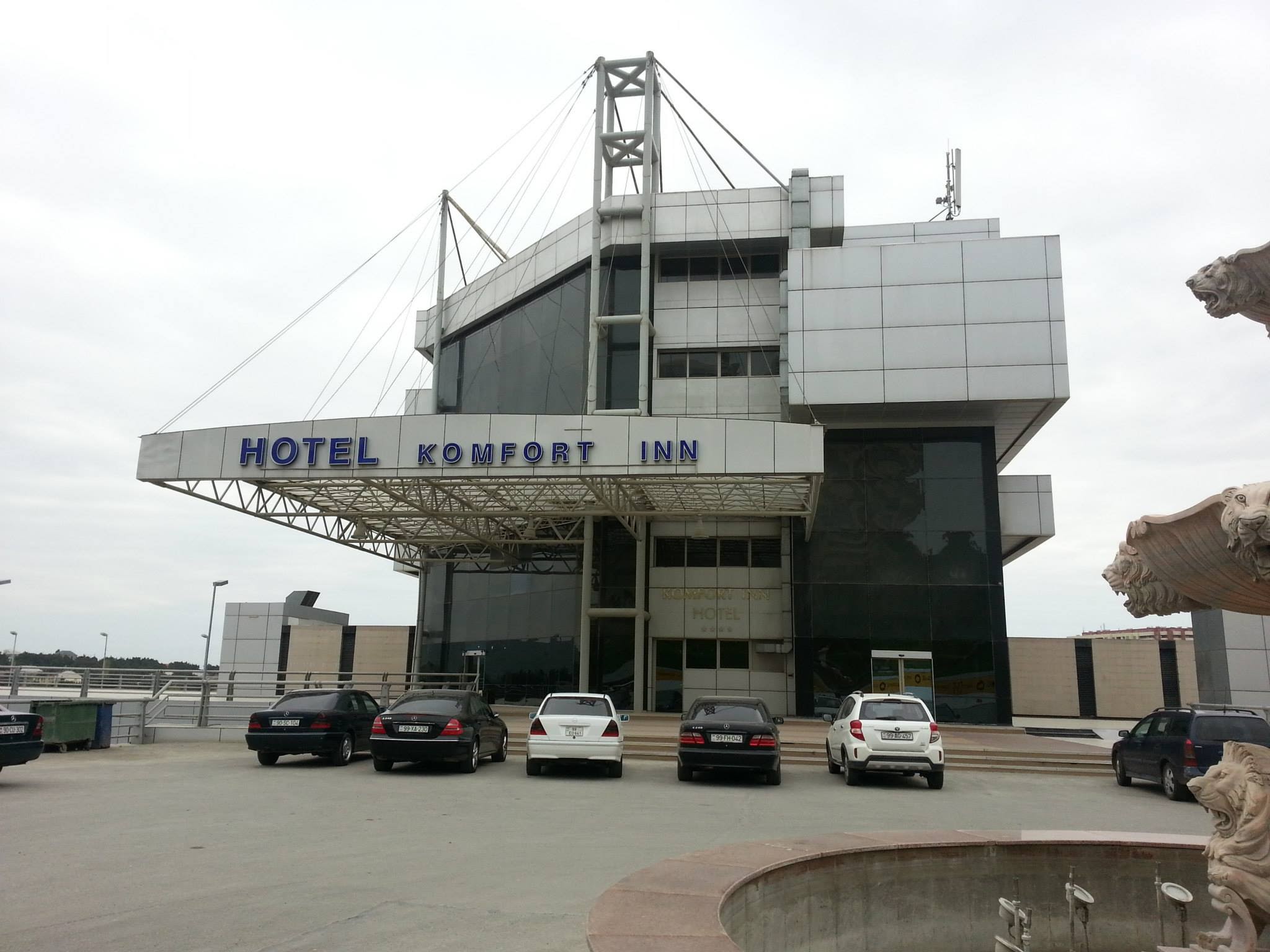 So we get to the bus station. Again, no English so we have to be creative. After this trip we can no longer lose at a game of charades! 🙂 They have a great way of letting you know the price of something – they take out actual money and show it to you. We just got into the country so we needed the latest brand of monopoly money. We went to find an ATM and found one soon. But there were, and I’m not exaggerating, at least 20 people crowded around it. But that seemed to be the only ATM in town so I went to stand in line. When the people saw me holding a card they made way for me and let me through to the machine. To this day I don’t know what that was about. Why were they standing there? So I got to the machine and got some money. I decided to take just enough for the bus because this whole situation was very fishy and I was afraid to get more. I could imagine myself stepping out of that line with just my left sock, everything else stripped away by skillful pickpockets. Once again, I was being too paranoid and the people there had no malicious intentions whatsoever. So we got on the bus. The in-drive entertainment was an azeri tv show, probably quite funny to someone who understood it. By the time we got to Baku it was late and quite cold and windy. And we were tired. We wandered around for a bit getting more annoyed by the cold every minute. Finally, we found a hotel. It was named “komfort inn” and had four stars so we were afraid to even ask about the price.