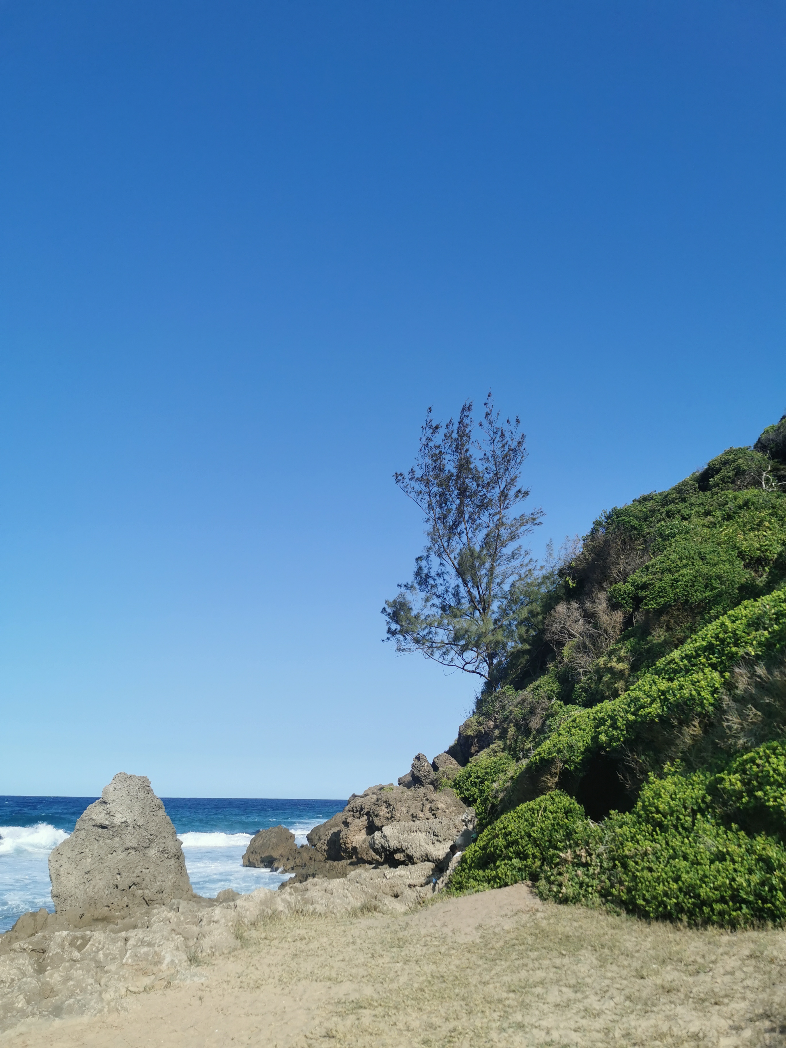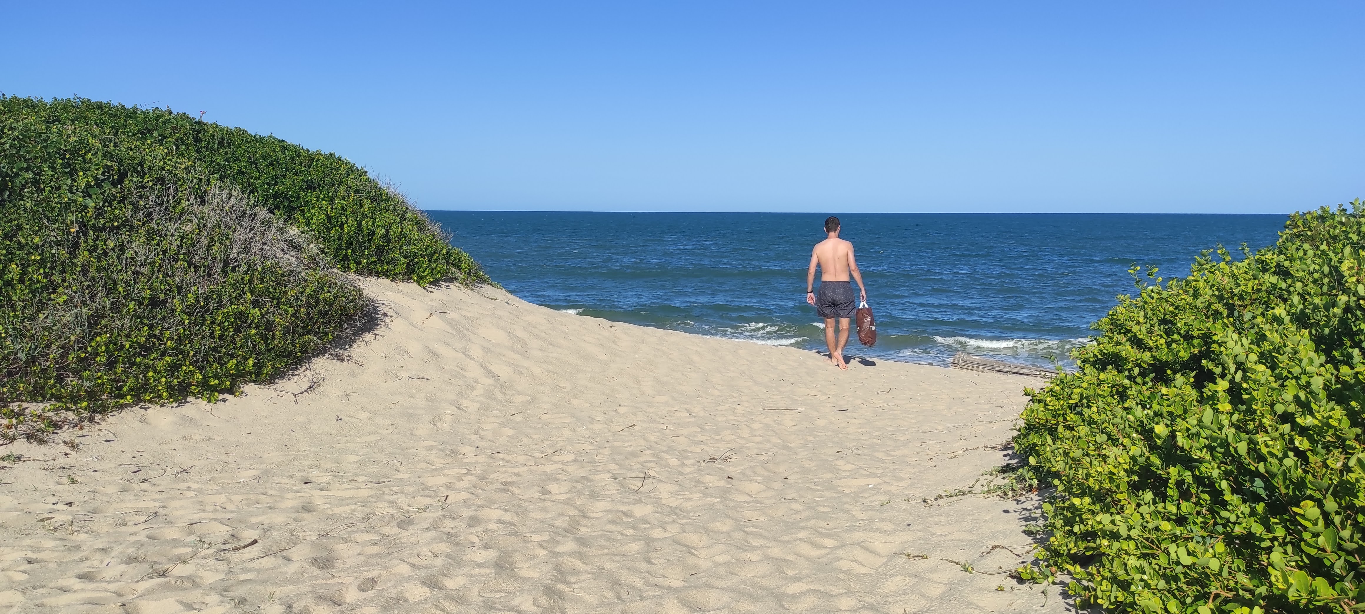We came across a couple of guards but they said the restaurant didn’t exist. We were set on finding out for ourselves so we asked if the path went down to the beach. One of the guards walked us to a trail breaking off from the main path, beach there. We reached the beach and started west.