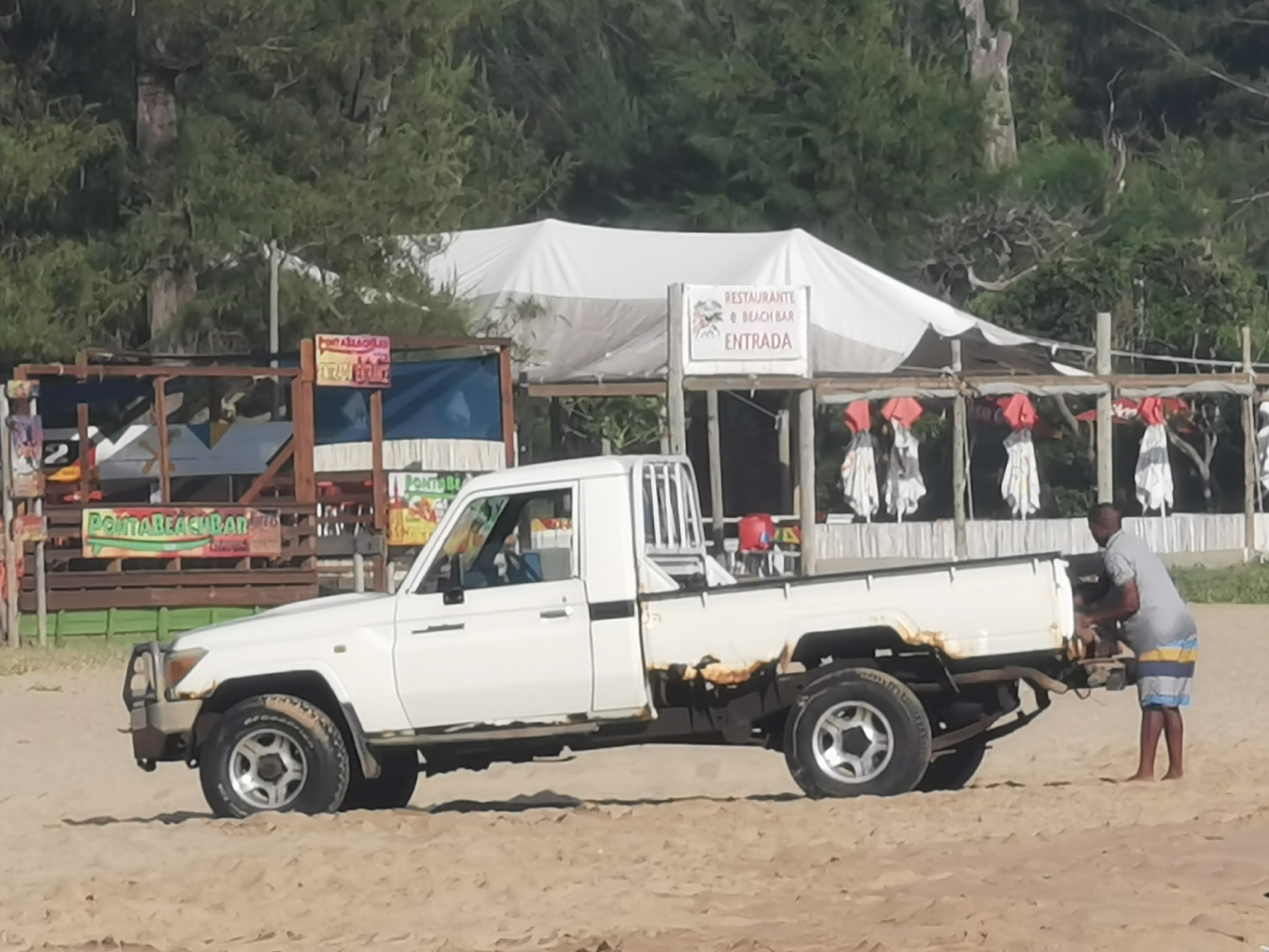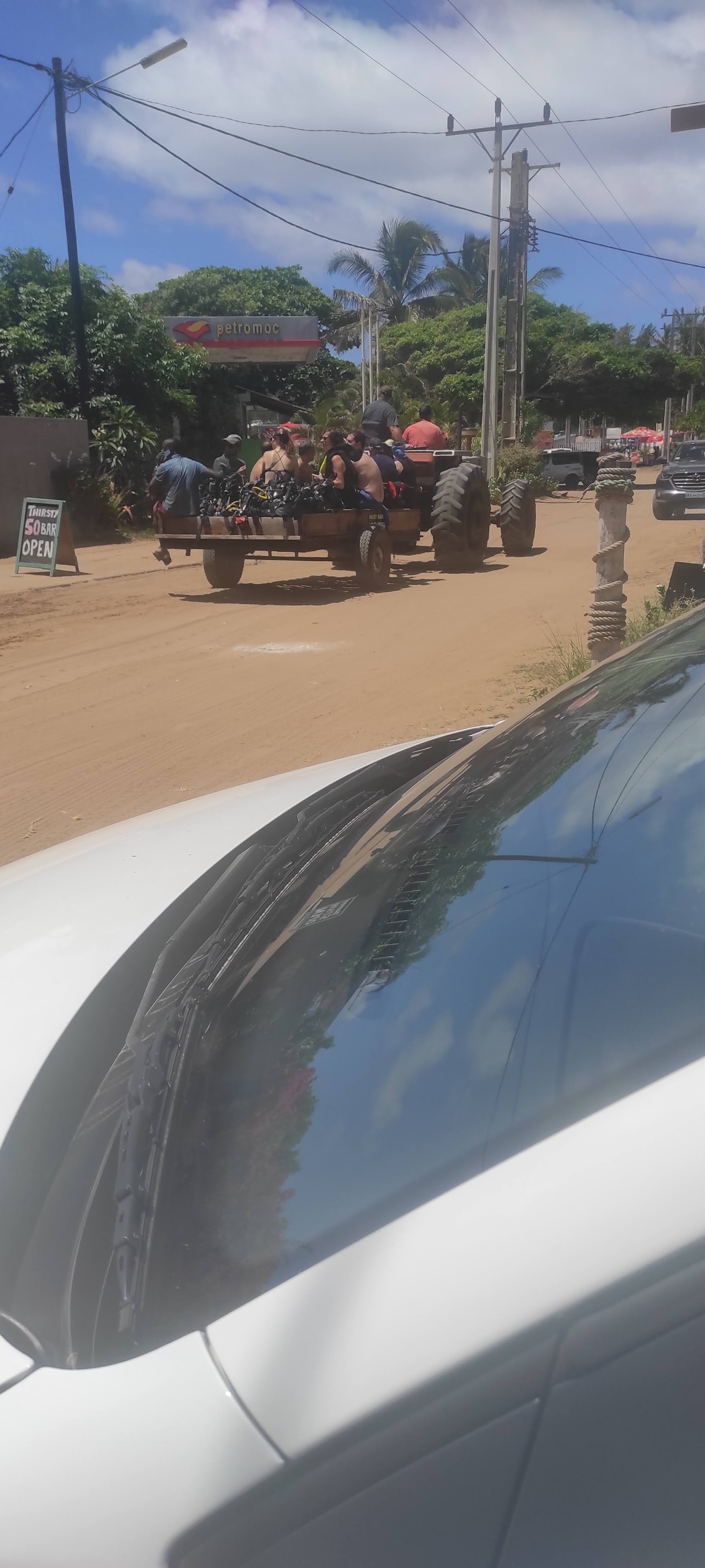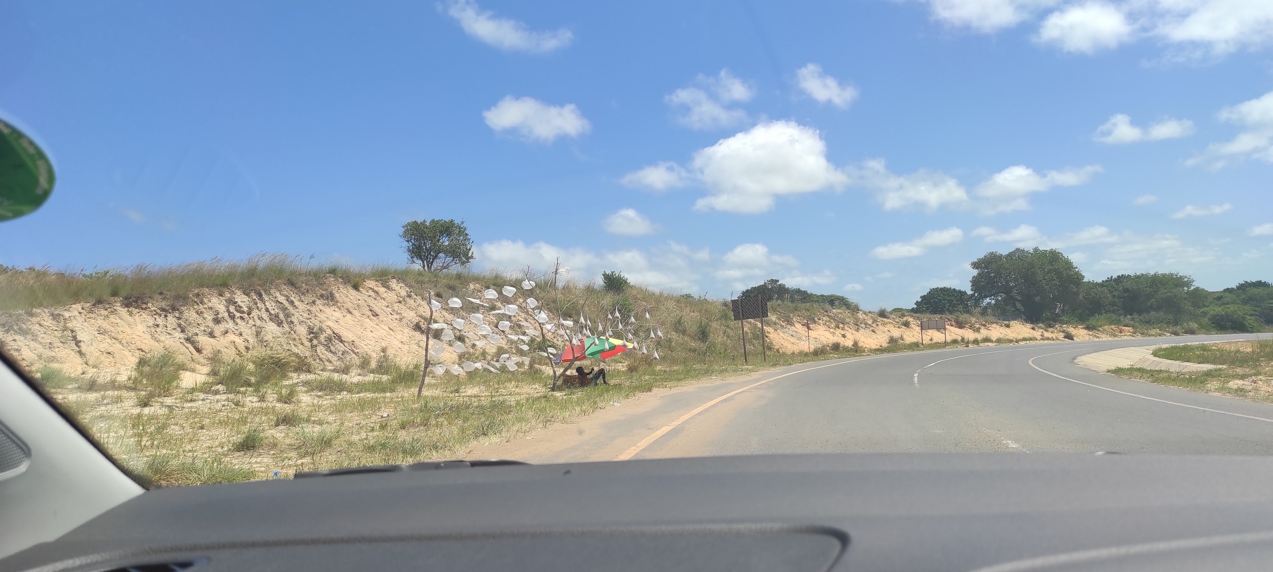 On Saturday we went south, to Ponta do Ouro. Got pulled over at a speed trap. 101 in a 60 area. I had to pay a fine, 4000 monopoly money. But a 2000 money bribe was also fine. The bribe also bought me a tip, there was another checkpoint ahead.