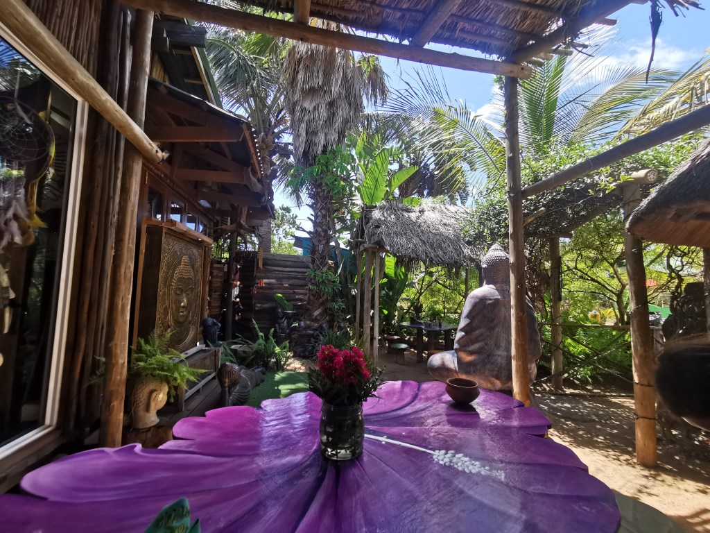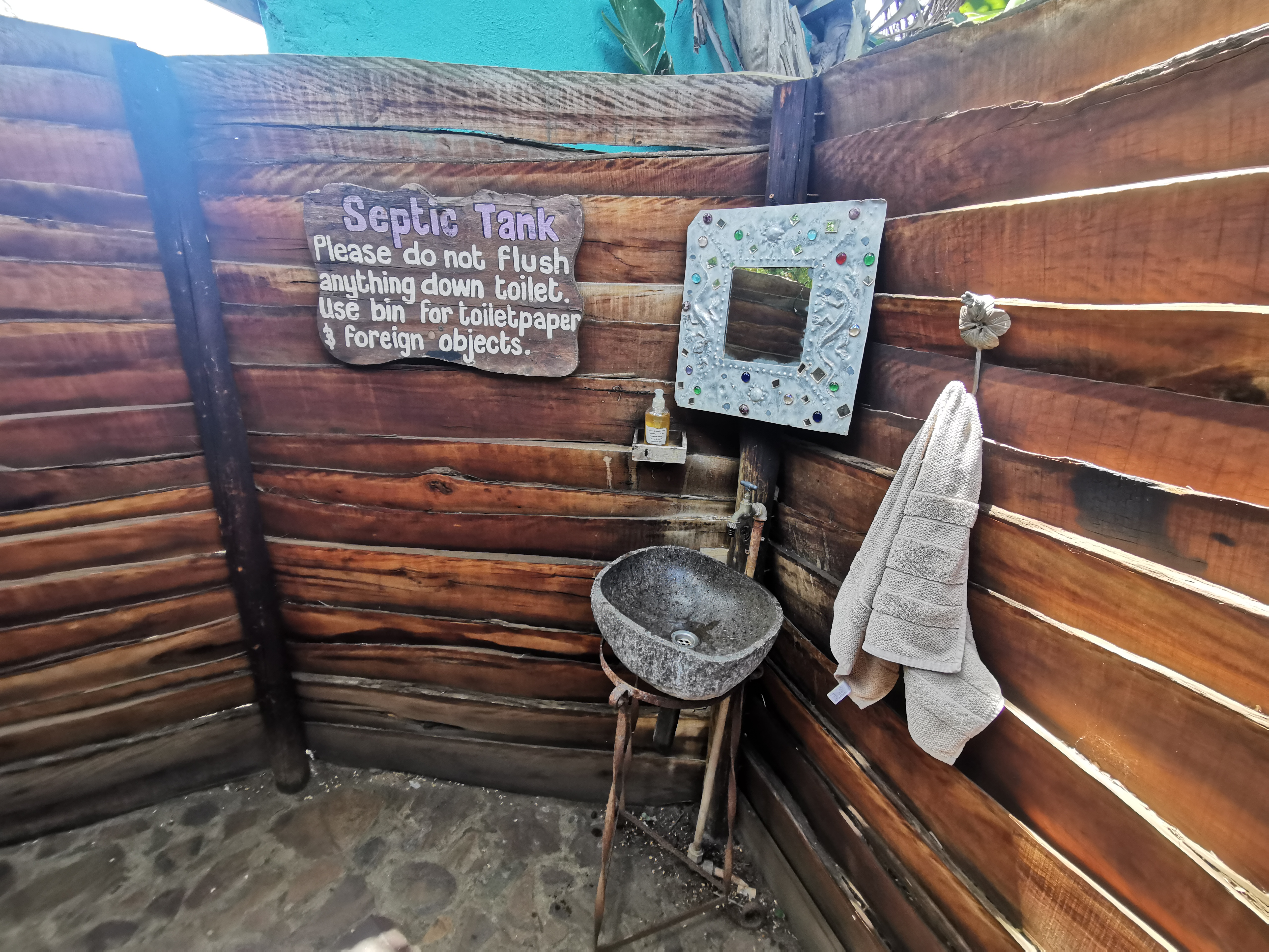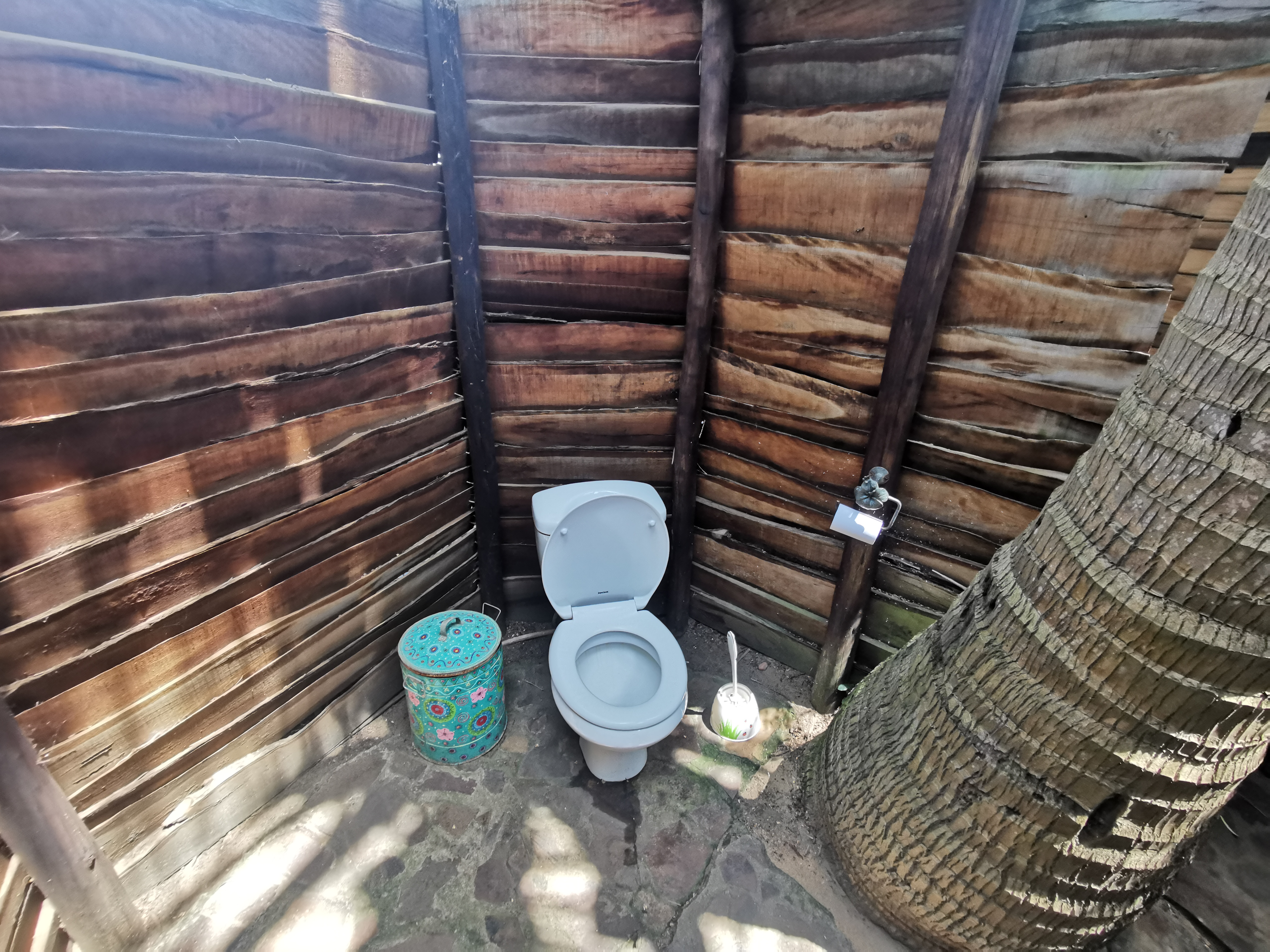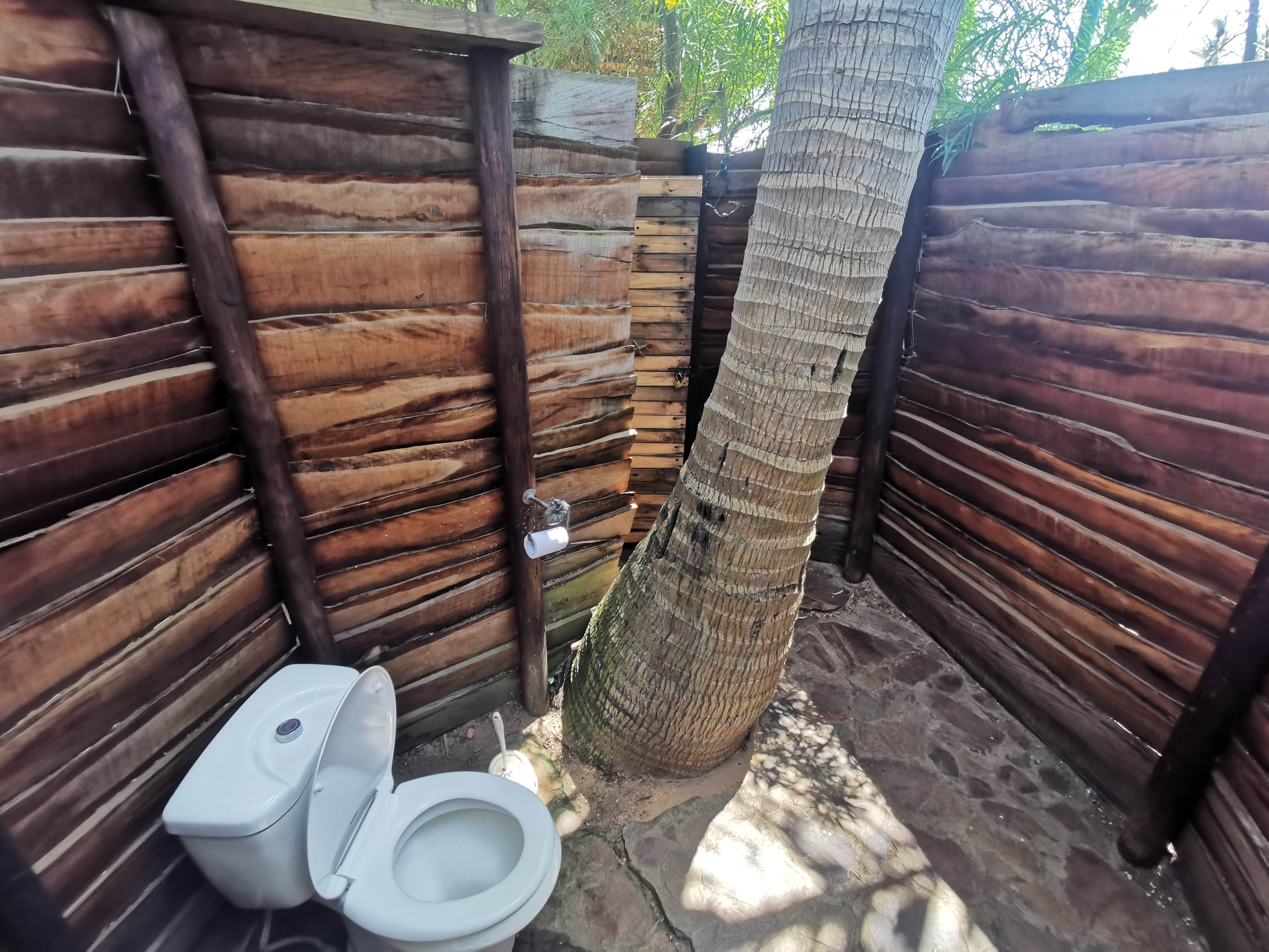 What got me most, though, was the toilet. It’s basically a tall wooden fence around a palm tree with a seat and a sink. Stone floor, no roof. Immaculately clean. Like something out of a cartoon. I went back in later just to see it again.