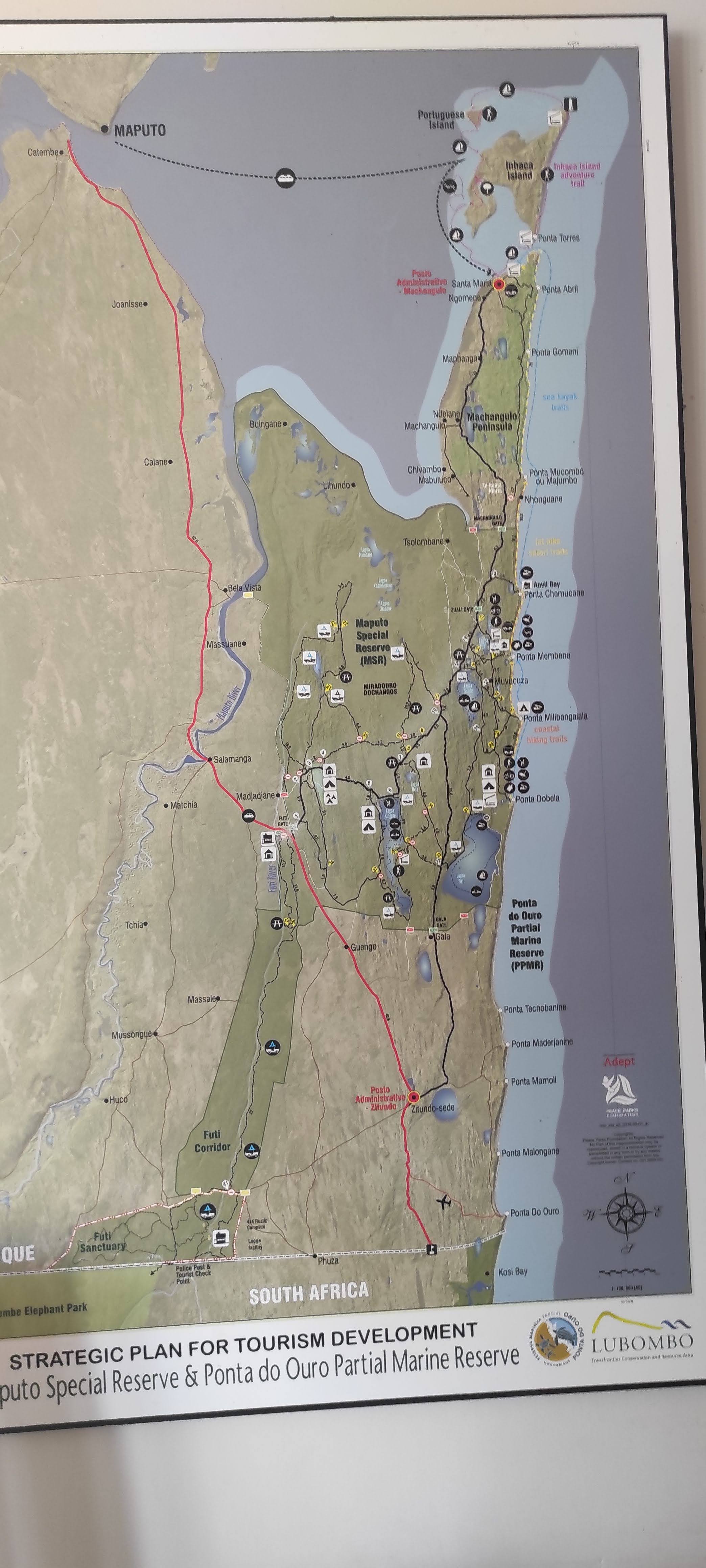 The next day we were able to find the elusive clinic that we were told could have our PCR tests done. We went looking for it on two separate occasions before, but couldn’t find it. Google was quite wrong about where it was, again. It was wrong about the route to the reserve and about quite a few things in Maputo. I wonder what it is that confuses it here. Anyways, a really nice guy drew us a map in the sand and it got us there.