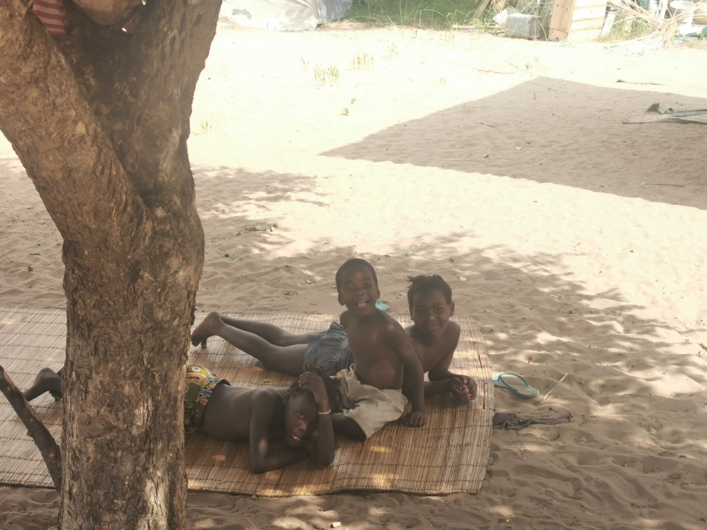 Finally, after an hour and a half, we reached somebody’s home. It was a couple of small shacks, one seemed to be a kitchen, one a toilet and the third must have been residential. We were greeted by a guy with a large welcoming grin. He got up from a mattress he had out in the open. Three of the most adorable children ever were running around.