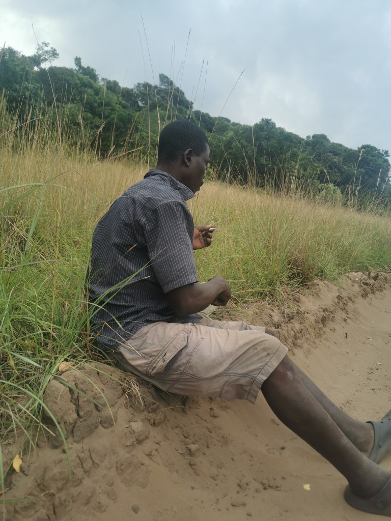 Soon another guy caught up. That must have been who the children ran off to get. The pace they set was a little much for the two of us so we had to ask for a break. They rolled a cigarette but they didn’t use rolling paper, they used pieces of paper torn out of a notebook.