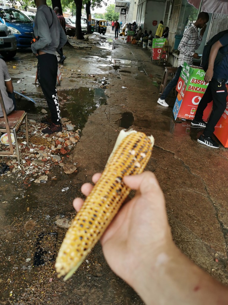 I bought a kernel of grilled corn in the street. Not as delicious as I expected, but not terrible. Probably would have been a lot better with a little salt.