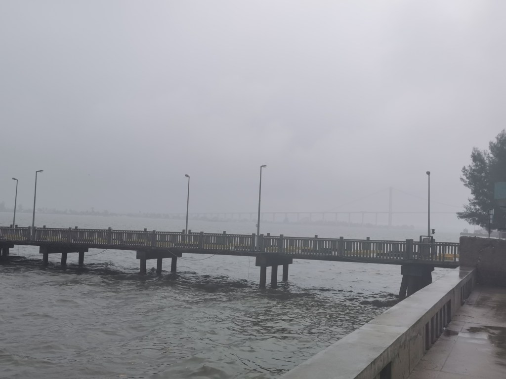 It started to rain. I didn’t mind. My allergies started acting up. Nobody could notice in the rain. There was a sinister beauty to the gray bay.