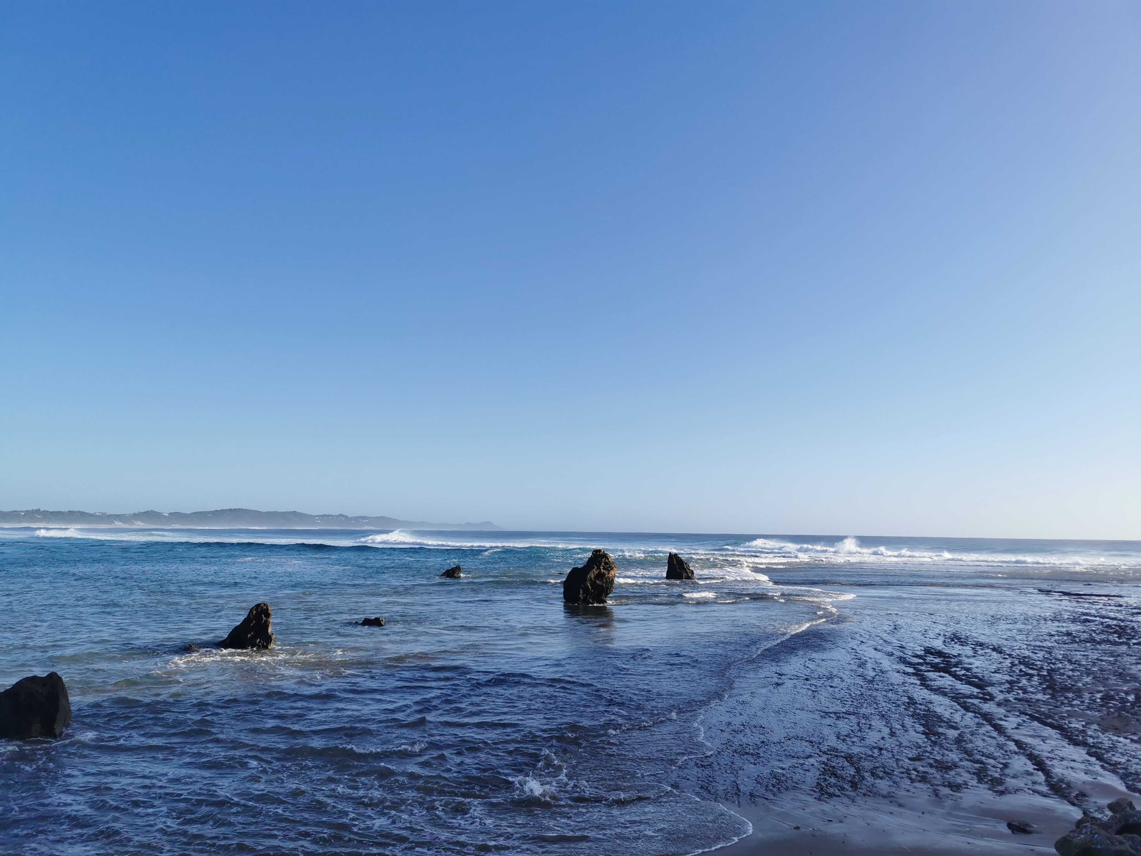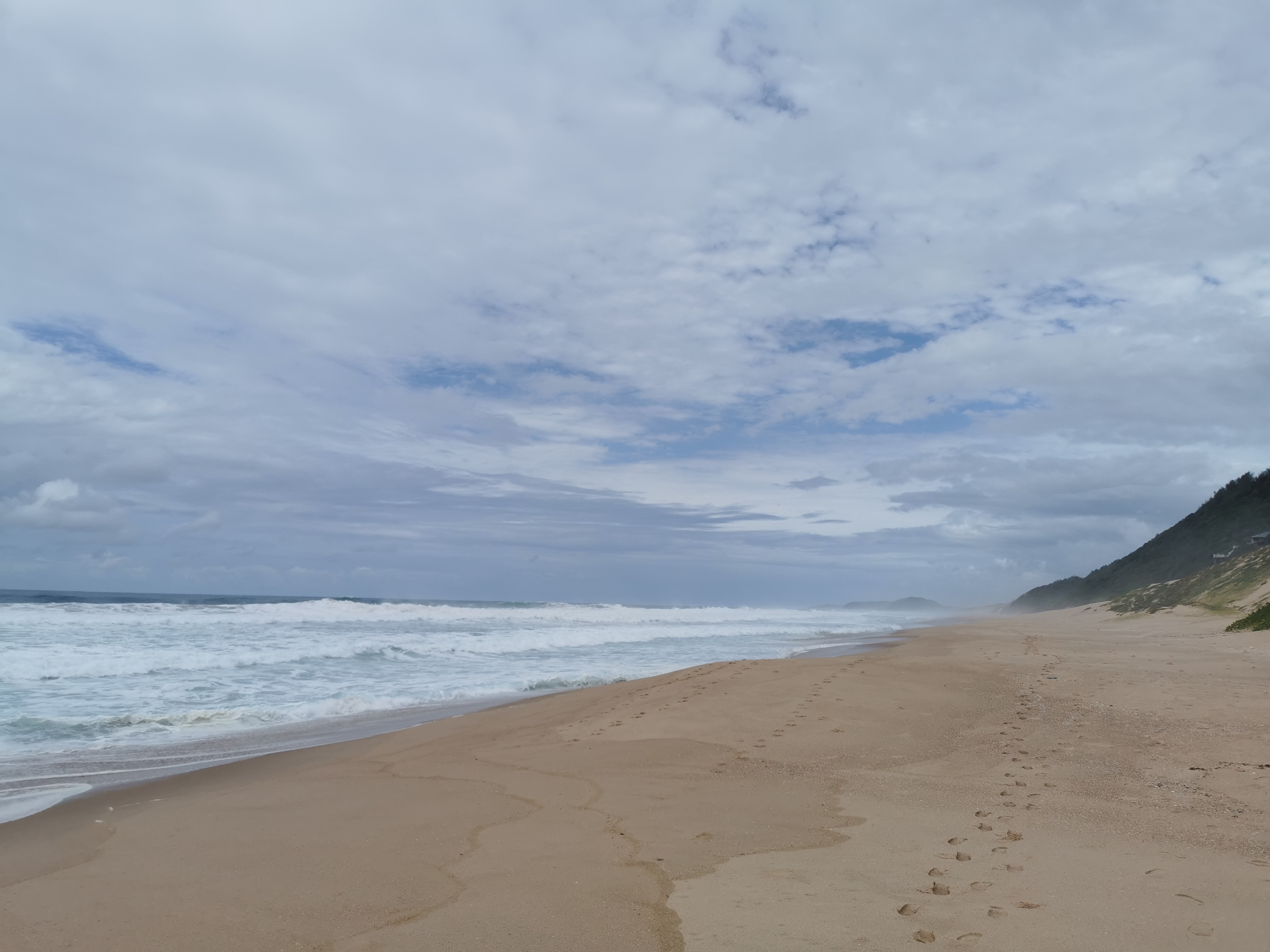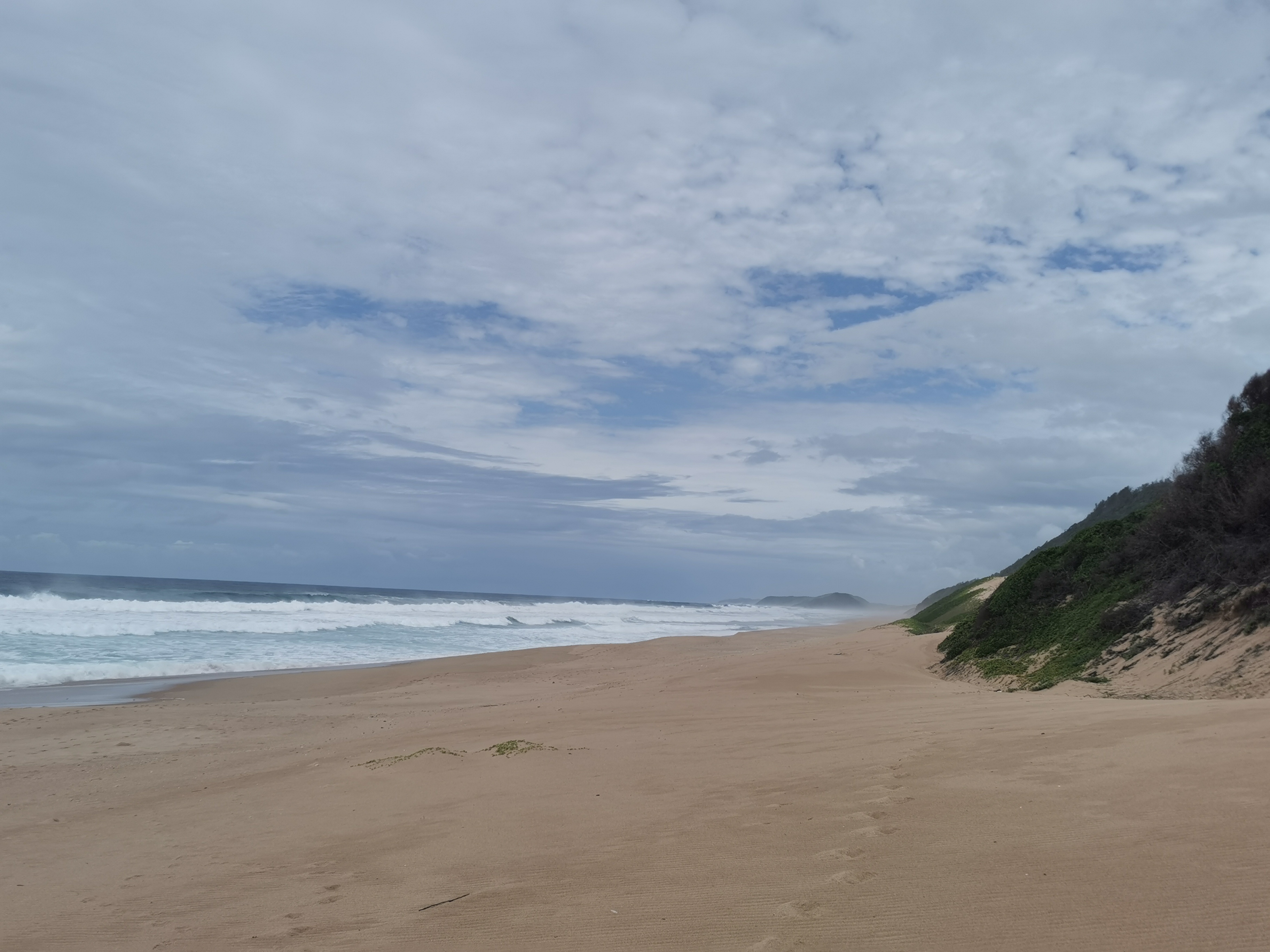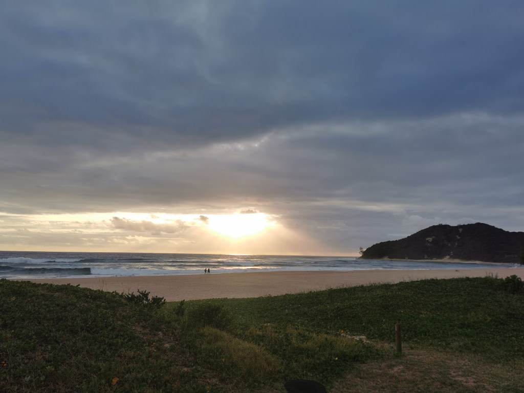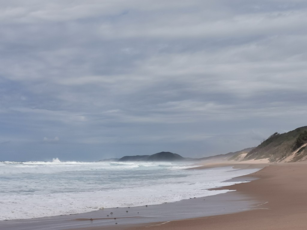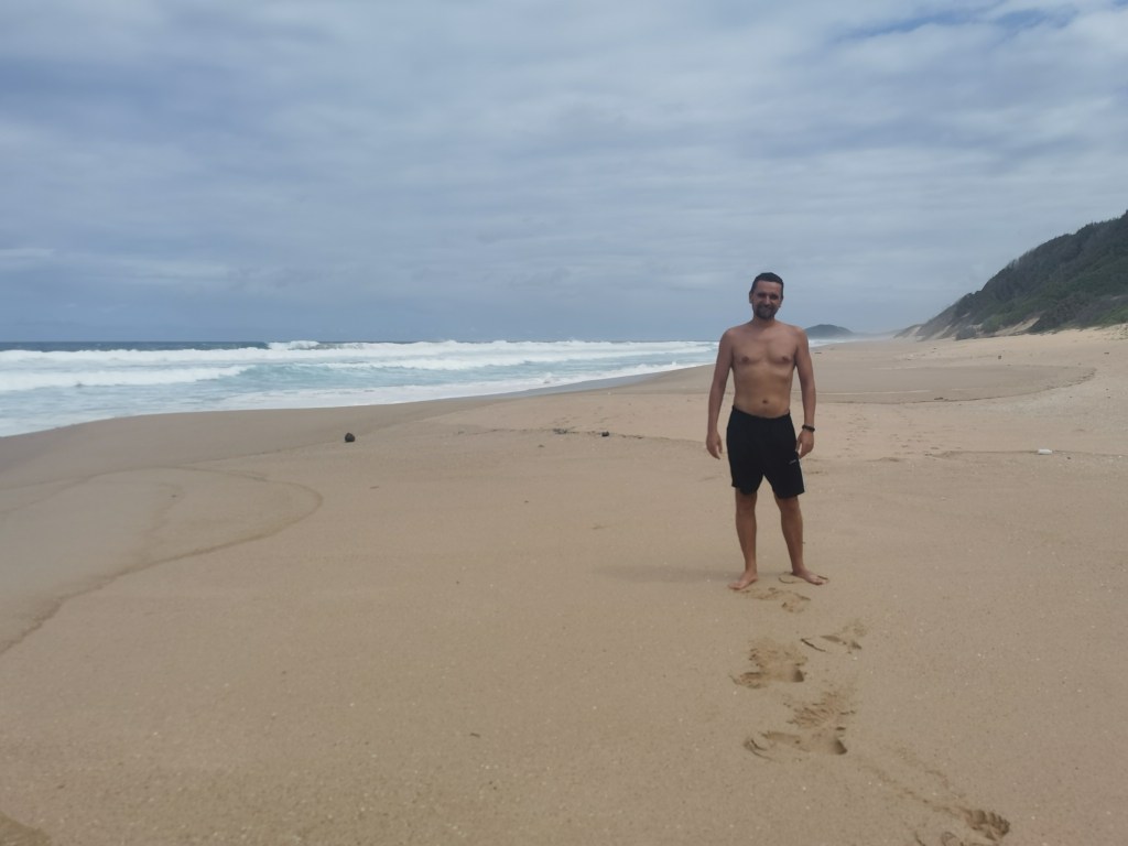 I looked back on the spot I tried to go swimming earlier, it was in Mozambique. So I had to go back in, in SA. It went slightly better, I got knocked over again but the water was a little deeper and I landed on my hands and feet this time, not my side like last time. This meant I got out without being covered in sand. Great success!