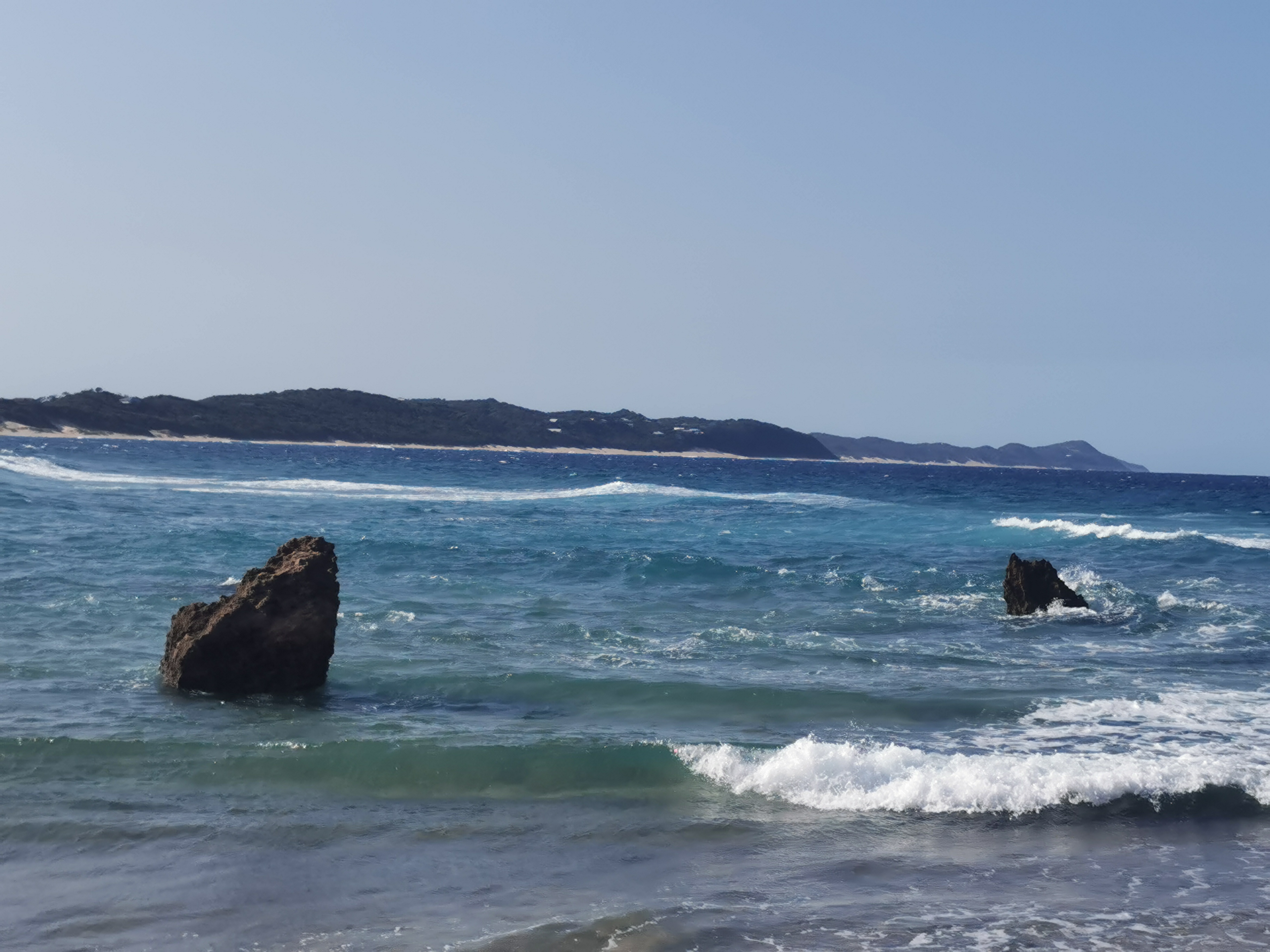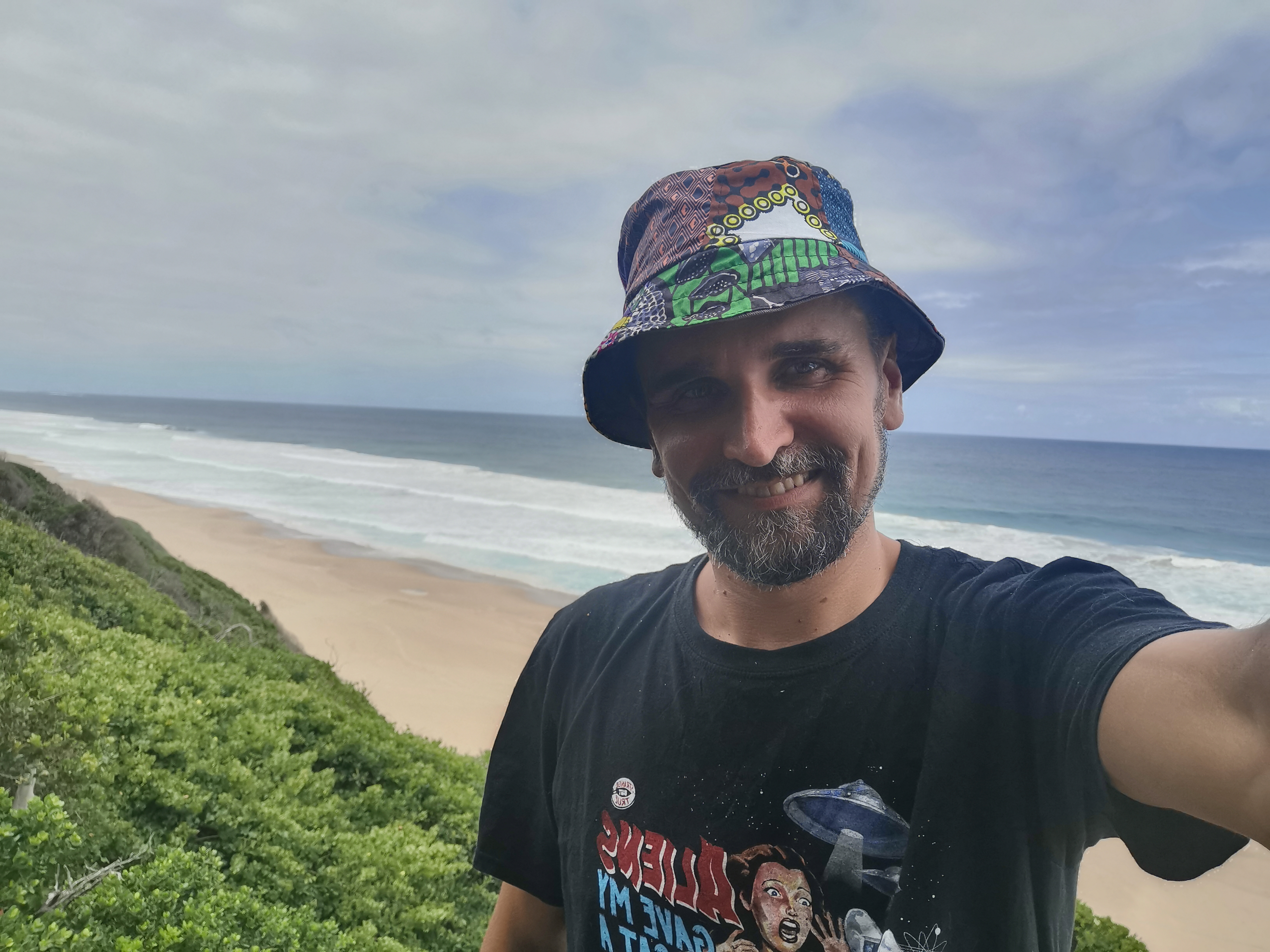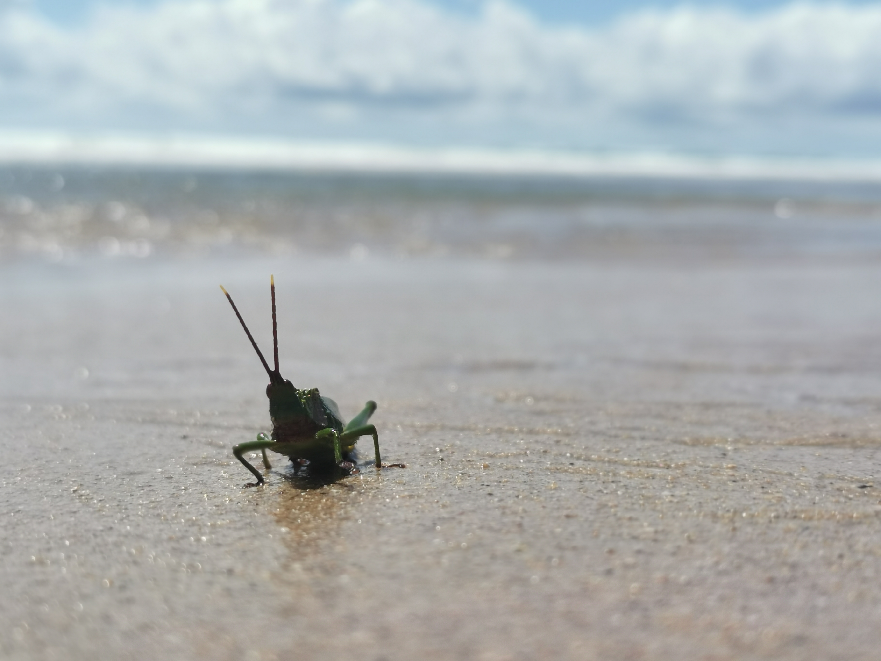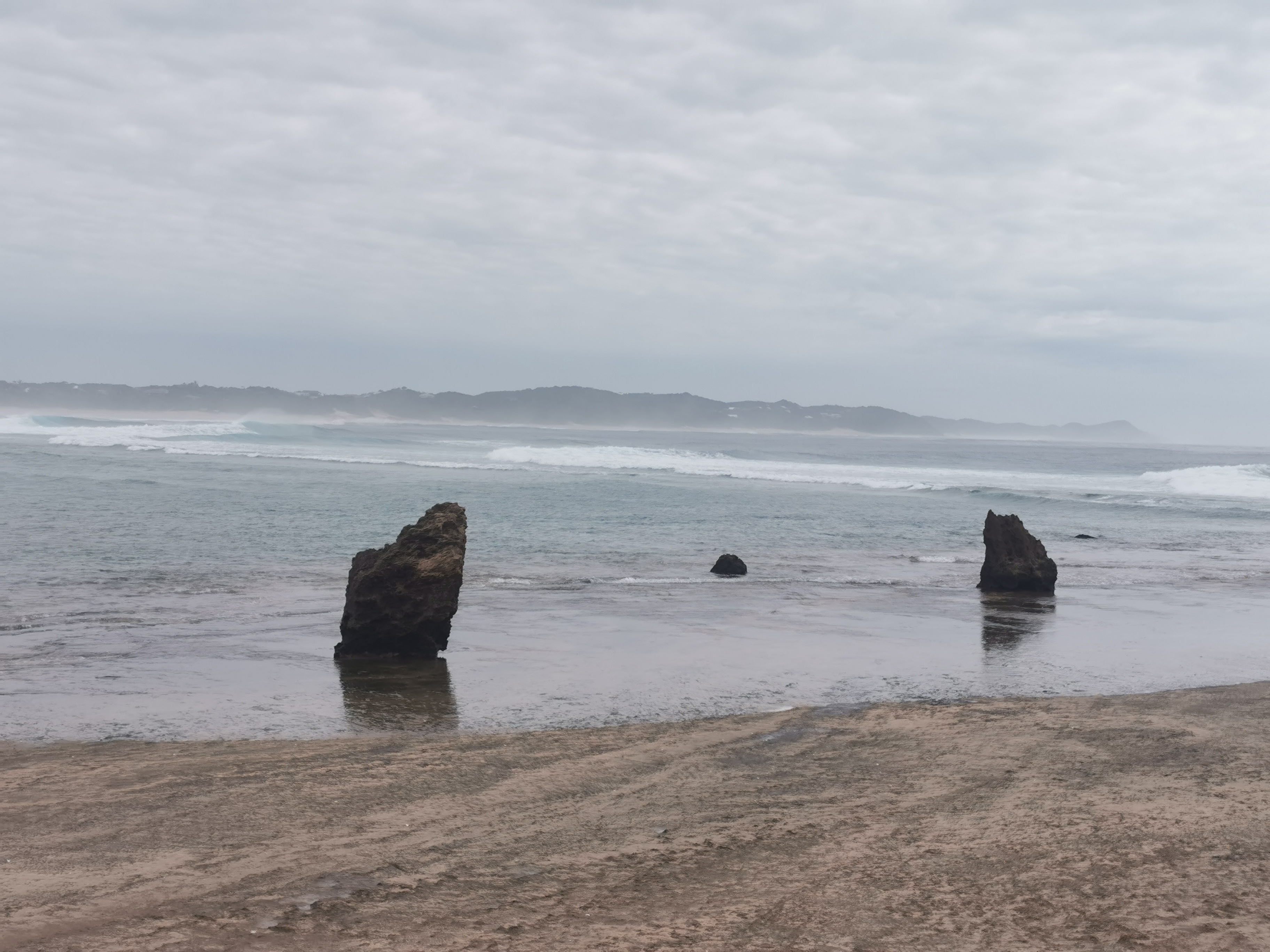 I looked back on the spot I tried to go swimming earlier, it was in Mozambique. So I had to go back in, in SA. It went slightly better, I got knocked over again but the water was a little deeper and I landed on my hands and feet this time, not my side like last time. This meant I got out without being covered in sand. Great success!