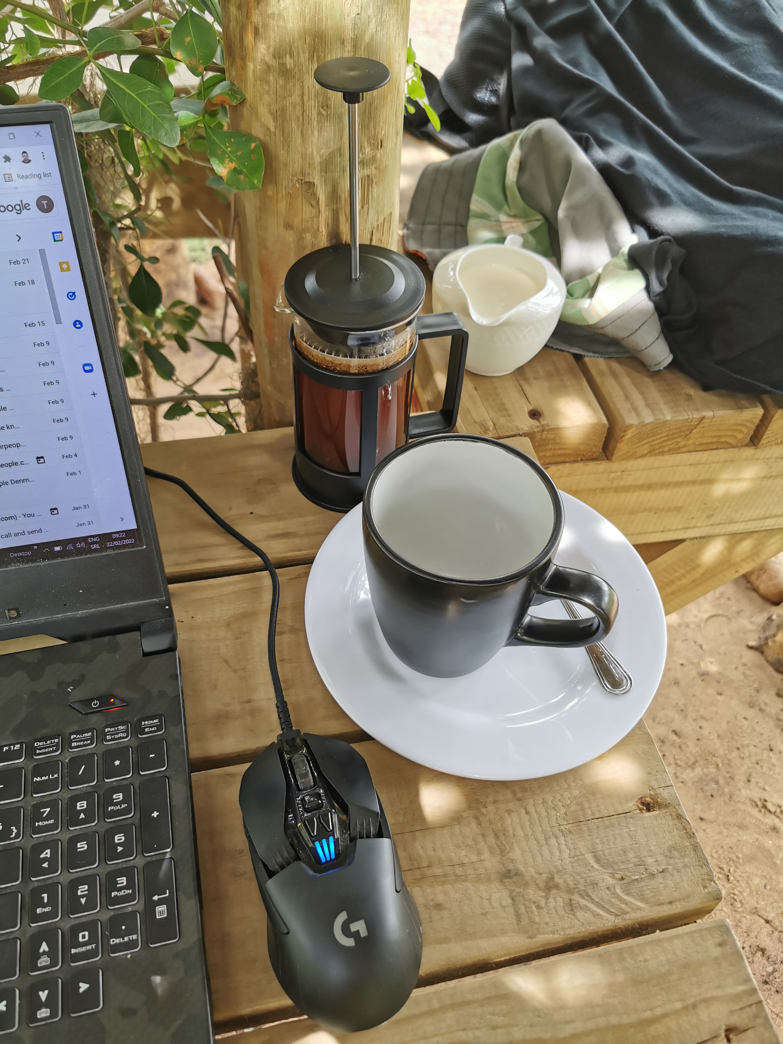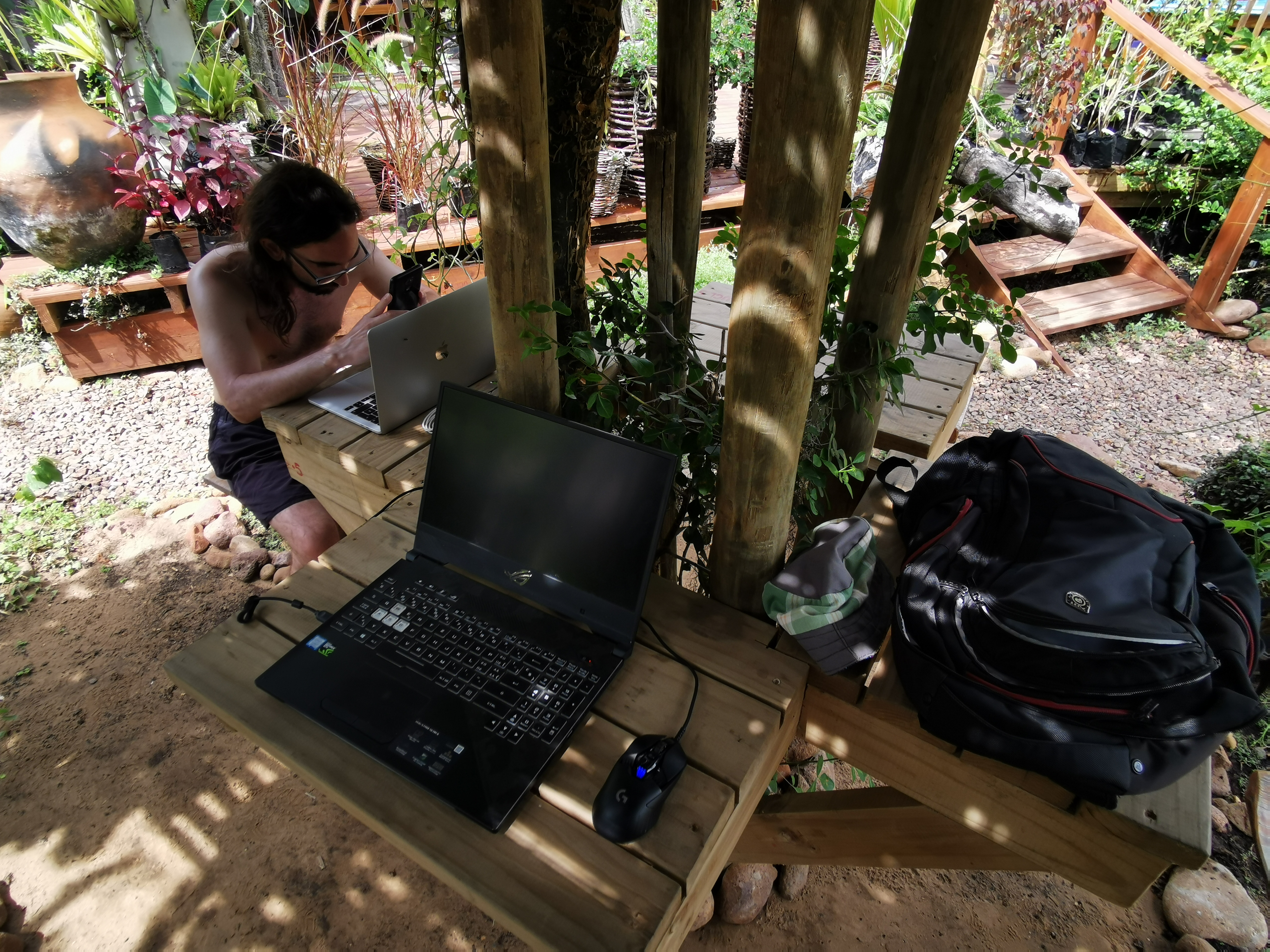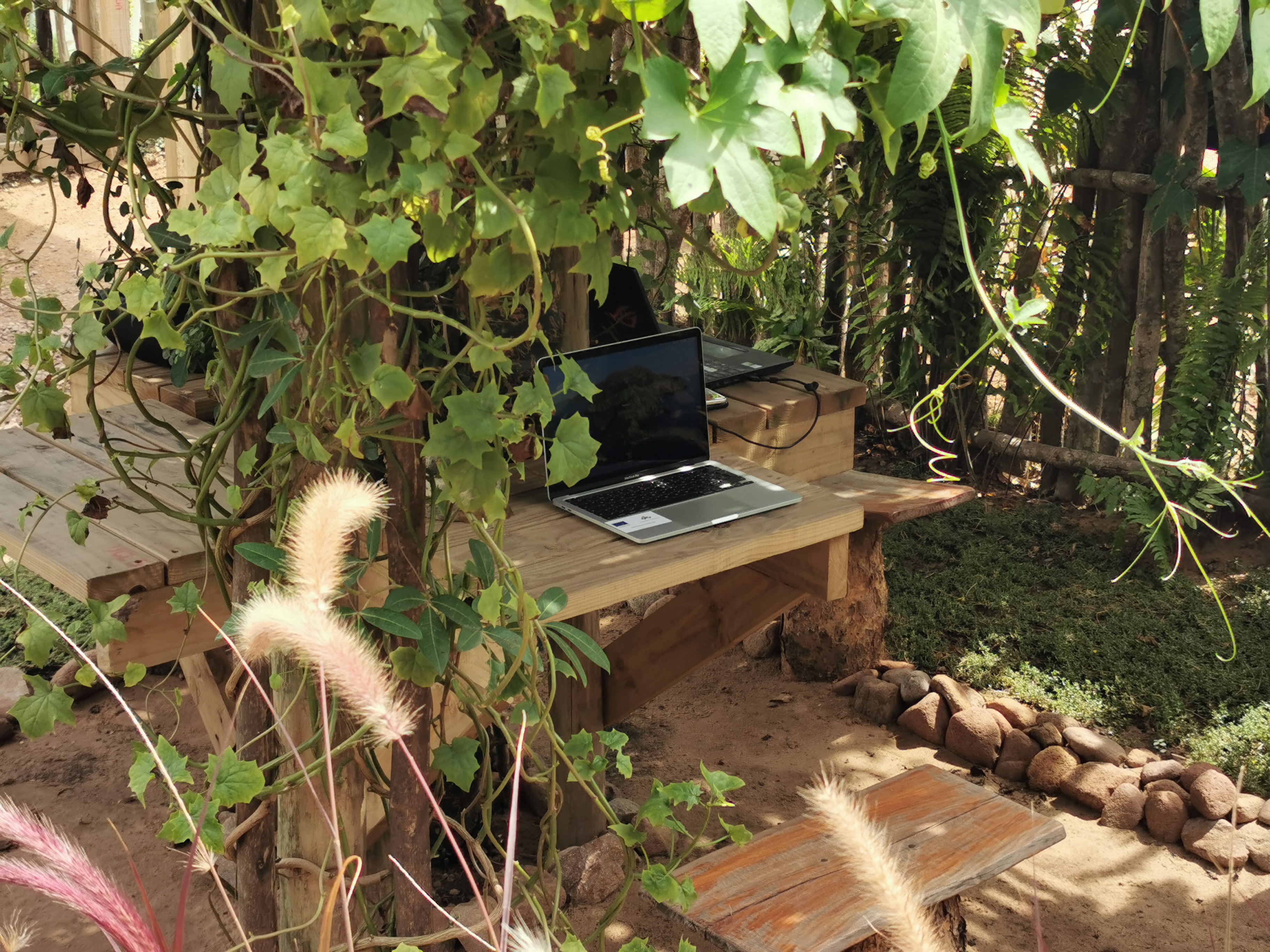 One morning we went out for coffee and found a lovely place with a gazebo. Next day, we brought our laptops and spent a couple of hours in the worlds most relaxed workplace. There was no power outlet, though, so when our batteries went out we had to go back.