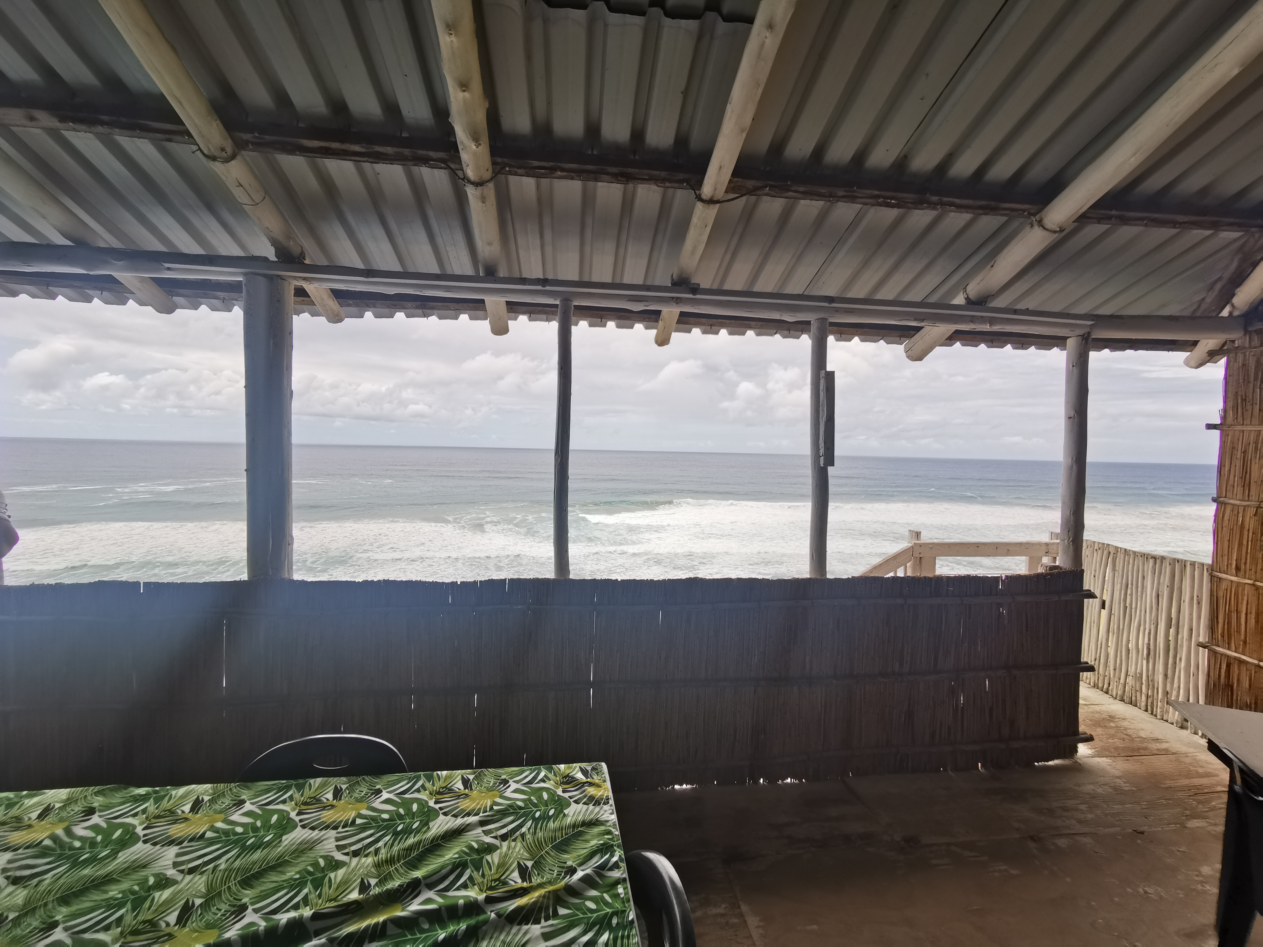 There was nobody there. The waves were much taller here, the point must have offered Punta more protection than we realized. We saw a couple of buildings ahead. One looked abandoned for a while. The next one was anyone’s guess. As we moved closer, we saw a couple on a deck. We figured we’d go up and ask. As we got near, we saw a sign, it was the name of the restaurant we were looking for but it looked very old. It looked like the place existed a long time ago but was long forgotten. But we’d at least go up for the view and a drink of water.
