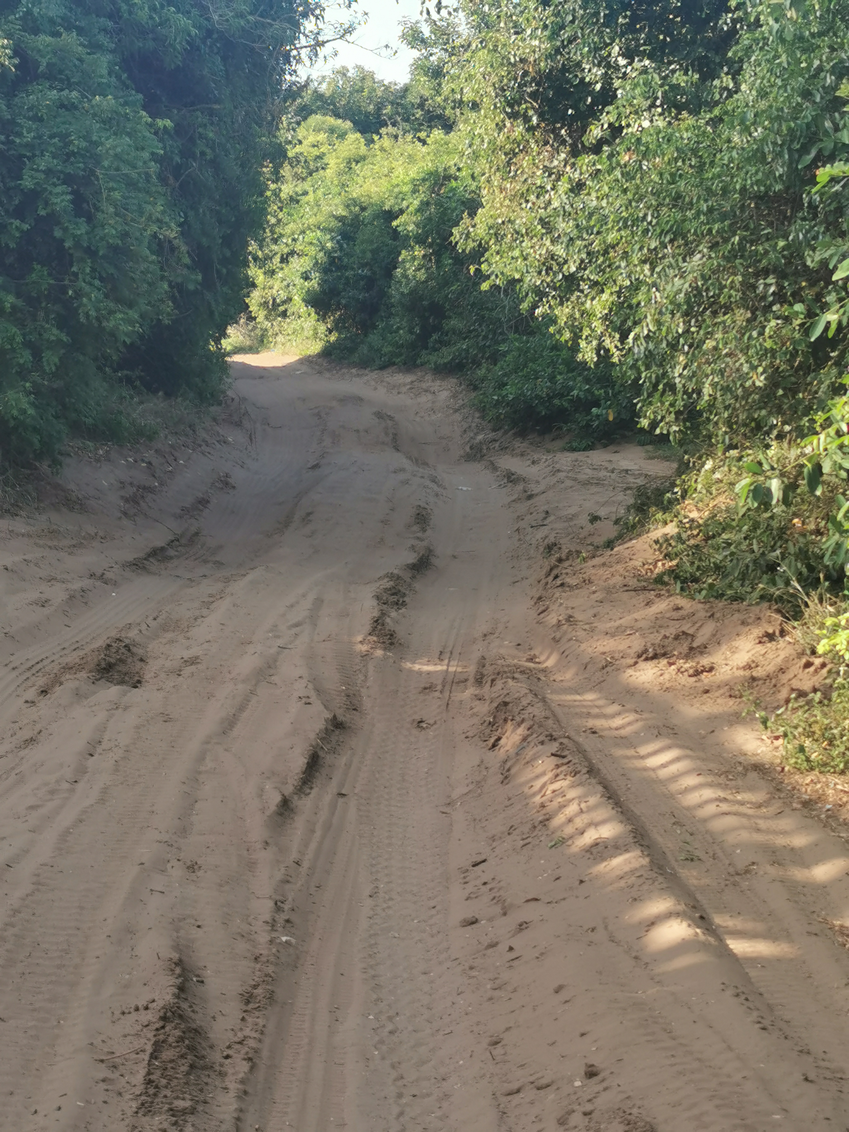 Google suggested a suspicious road. I decided to try it. It was a sand road, deep at times. We were in a VW Polo. We almost got stuck at one point, we barely made it out. At one point, we got to an intersection. Where we were supposed to go barely even resembled a path. We decided that attempting that in this car was pushing it. If it was my car and I had some support in case things go wrong, I would try it, just to see if I could do it. But not now.