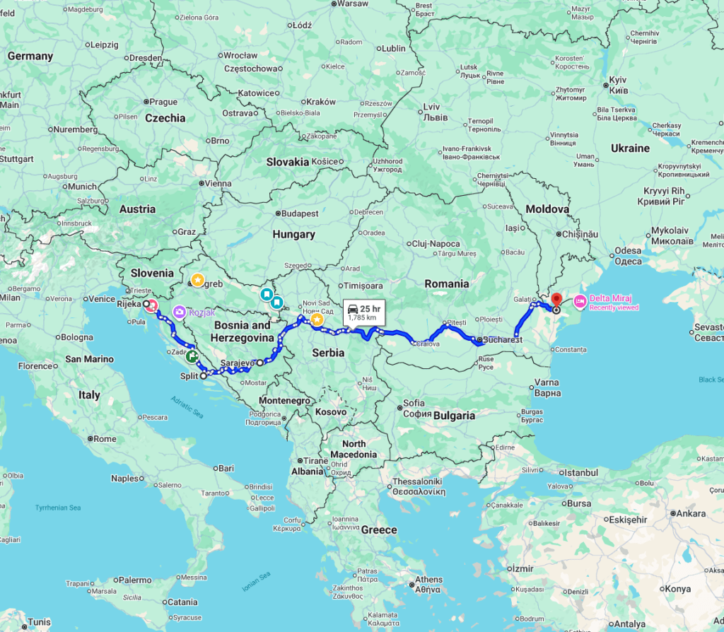 Route: Rijeka → Sarajevo (to revisit where it all began) → Black Sea coast